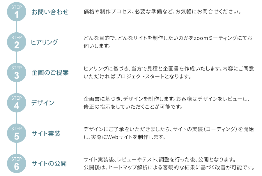 「ホームページを作ろう」とは思っても、まず何から取り掛かったらいいかわからず、ぐずぐずしていたのですが、やるべきこと、スケジュール、さらに、ドメイン取得方法まで「コーチ」のように丁寧に説明、リードしてくれました。