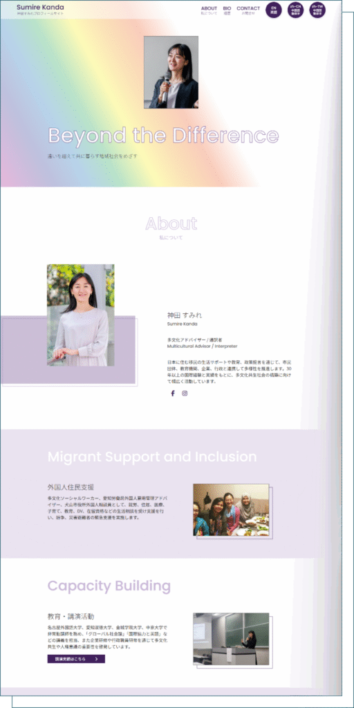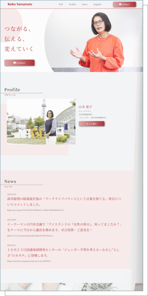 ホームページの制作をご依頼したきっかけは、個人として行っているソーシャルワークや研究活動を整理し、幅広い方々にわかりやすく伝えたいと思ったこと、そして企業や行政からの問い合わせが増えてきたことからでした。