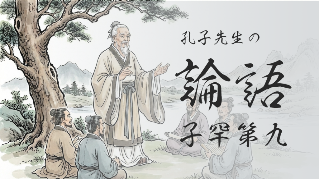 達巷党(たっこうとう)の人(ひと)曰(いわ)く、大(だい)なるかな孔子(こうし)。博(ひろ)く学(まな)びて名(な)を成(な)す所(ところ)無(な)しと。子(し)、之(これ)を聞(き)き、門弟子(もんていし)に謂(い)いて曰(いわ)く、吾(われ)何(なに)をか執(と)らん。御(ぎょ)を執(と)らんか、射(しゃ)を執(と)らんか。吾(われ)は御(ぎょ)を執(と)らん。
