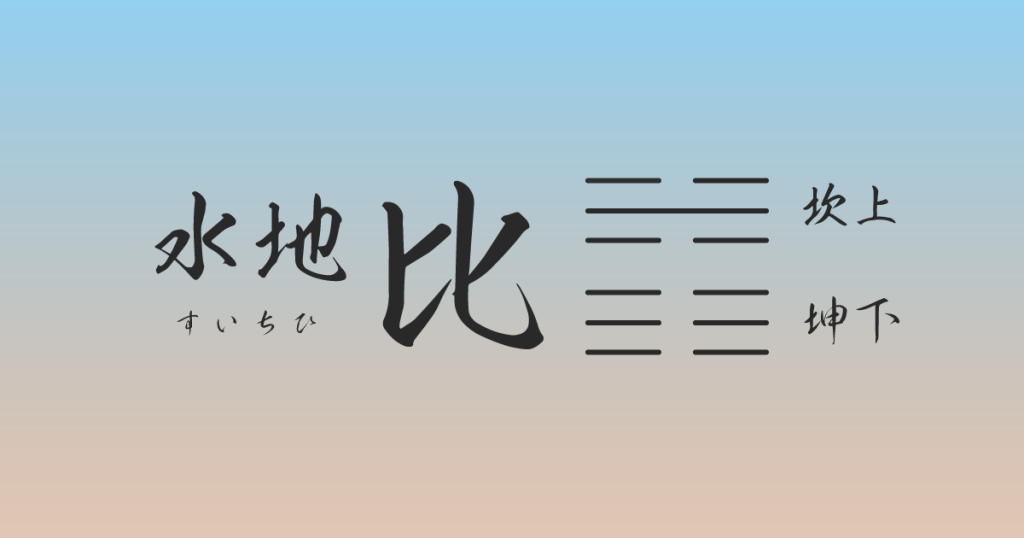 水地比(すいちひ)は坎上・坤下で水の下に地がある卦の形。水が土にしみ入り、土は水の潤す力によって草木を成長させることができます。