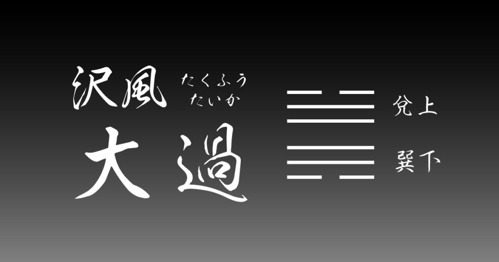 大過(たいか)は、大なるものが過ぎる、大いに過ぎる、という意味。大なるものが盛んに過ぎ、行き過ぎている。